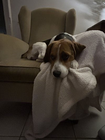 C’est un chien adorable, encore un peu jeune et plein d’énergie ! Très joueur et très gourmand, il a tendance à voler la nourriture et ne sait pas encore bien rester seul — il risque donc de détruire s’il s’ennuie.