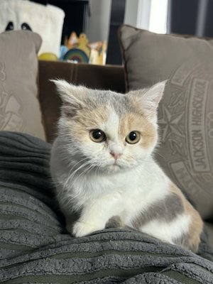 Nous proposons à l’adoption une adorable femelle British Shorthair tricolore, élevée au cœur de la maison, dans un environnement calme, entourée d’attention et de manipulations quotidiennes.