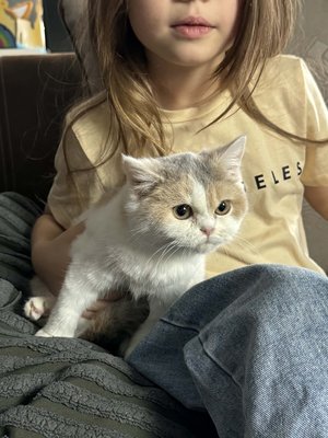 C’est une chatte douce, posée et très sociable, habituée aux enfants et aux autres chats. Elle apprécie la présence humaine et s’intègre facilement à la vie de famille.