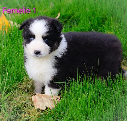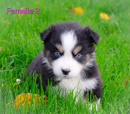 Nous sommes ravis de vous présenter la superbe portée née le 22 septembre d’une maman miniature bleu merle aux yeux bleus et d’un papa standard noir tricolore aux yeux bleus. Huit adorables chiots, composés de 4 femelles et 4 mâles, sont prêts à trouver leur nouvelle famille à partir du 17 novembre.