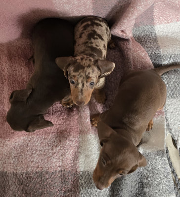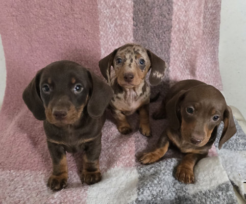 🐾 Teckel nain poil court - choco et feu et arlequin