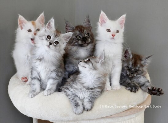 Ils sont pucés, vermifugés 3x, vaccinés 2x, pédigrée, contrat, auront leur petit baluchon de départ, les parents sont visibles et testés pour les maladies des Maine Coon.