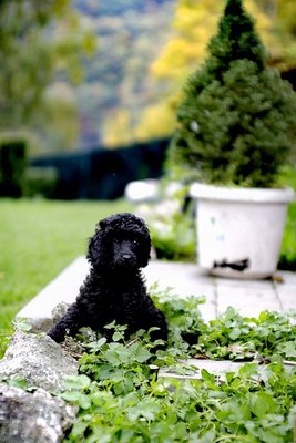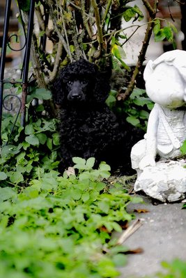 5 Chiots caniche moyen noir. Il y a 1 mâle et 4 femelles. Avec un pédigrée Saint-hubert Belgique.