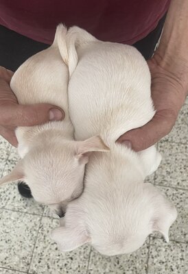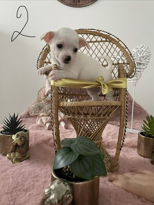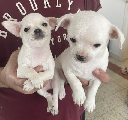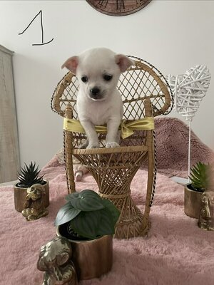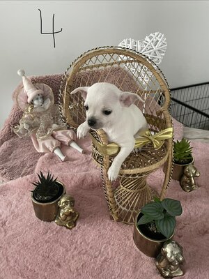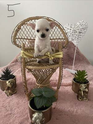 5 petites boules blanches et crème chihuahuas mâles disponibles à la réservation donc un petit gabarit,un gabarit standard,trois gabarit moyen il se ressemble très fort donc j’ai mis des numéros sur les photos veuillez préciser le numéro sur la photo pour plus de renseignements et plus de photos n’hésitez pas à nous contacter au