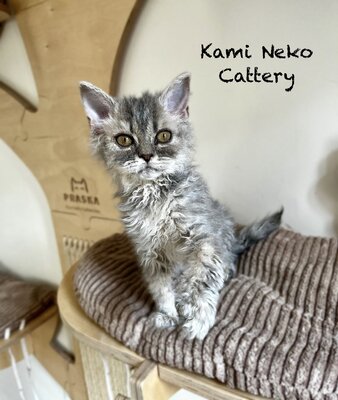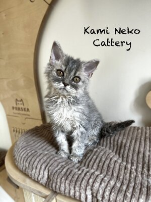 Petit mâle selkirk rex longhair bleu tabby né en décembre 2025. Mickel est un vrai cœur de beurre qui aime les câlins et se blottir sur les jambes 💝 il aime aussi jouer et est très sociable.
