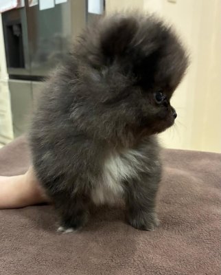 Le petit "Gris Merle" : Un look unique et très recherché avec sa robe nuancée de gris et ses taches sombres. Il a une bouille d'ourson irrésistible et une fourrure déjà très dense.