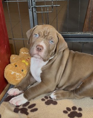 Pucé, vaccinés, vermifugés, gros gabarit, 10,400kg à 7 semaines. Pédigrée abkc, avec des champions dans les lignées des deux parents.