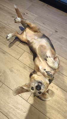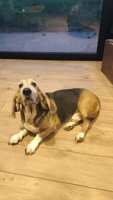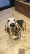 Mouche, Basset Hound de 9 ans, cherche une nouvelle famille pour cause d'allergie chronique développée par un membre de la famille.