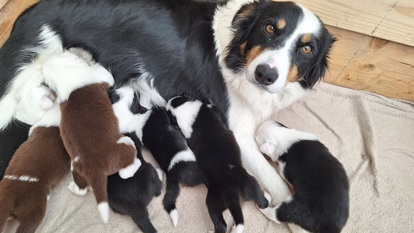 A réserver chiots border collie chocolat tricolore et noir blanc tricolore, né le 24/10/2025 disponible plus ou moins le 24/12/2025, bien que cela est Noël 🎅 vous allez vous engager plus ou moins 15 ans.
