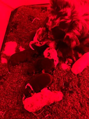 Les chiots ont leur espace, stimulés dès le plus jeune âge à la propreté grâce à un enclos libre accès intérieur extérieur chauffé à l'aide de lampe chauffante.