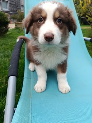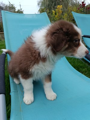 Issue d'Eliot, papa berger américain qui vit chez nous, nos chiots sont équilibrés, très bien dans leurs patounes, sociabilisés dès le premier jour.