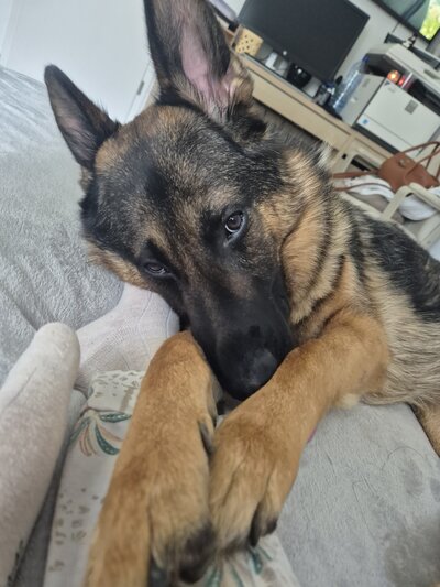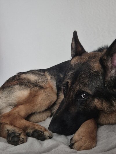 Magnifique Berger allemand, né le 12 juin 2024, robe noir et feu, recherche une nouvelle famille aimante.