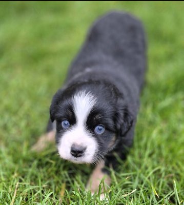 * mâle bleu merle aux yeux bleus, curieux, joueur, peur de rien.