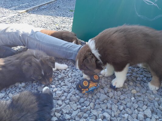 Nous proposons à la réservation de superbes chiots Bergers Australiens issus d’un élevage familial, élevés avec amour au cœur de notre foyer.
