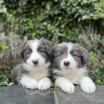 Les parents sont visibles. Les chiots sont de couleur bleu et blanc une robe très rare et superbe.