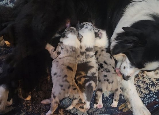 Nous sommes de magnifiques petits chiots border collie qui cherchons une famille pour la vie. Nous avons bien sûr le pédigrée Saint-Hubert. Nos parents ont été testés pour la dysplasie des hanches et coudes et en sont indemnes et également ils ont été testés pour toutes les maladies génétiques du border chez My Dog Dna. Ceci met toutes les chances de notre côté pour avoir une santé optimale.