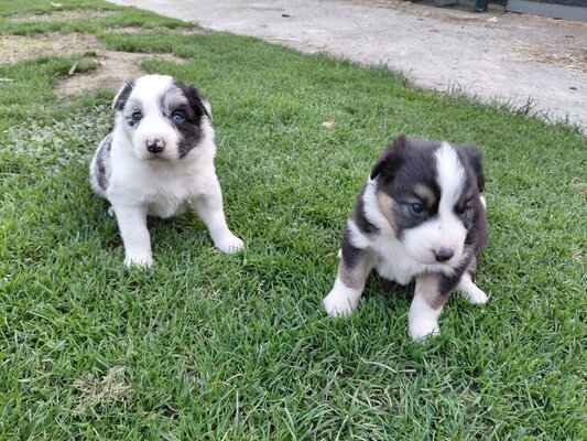 Nous avons la grande joie de vous présenter nos adorables petits bébés : 3 femelles bleu merle, 2 mâle bleu merle, 2 mâles tricolore et 2 mâle noir et blanc.
