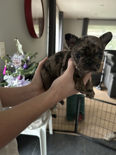 4 femelles Bouledogues Français élevées en famille avec enfants en chat. Papa silver Merle et maman Noir Bringé. Visible à la maison.Nos 4 Boules d'amour partiront en ordre de tout. Vaccinés,vermifugés et pucés avec un passeport Européen.