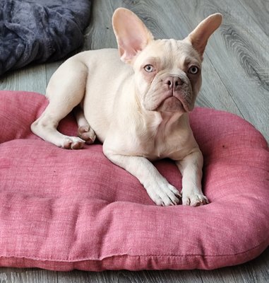 Elle est d’une douceur incroyable. Très câline, toujours en demande d’amour, elle adore être près de ses humains. Elle est propre, calme, sort uniquement pour ses besoins et reste principalement chien d’intérieur. Elle a eu une portée l’été dernier et n’est pas opérée.