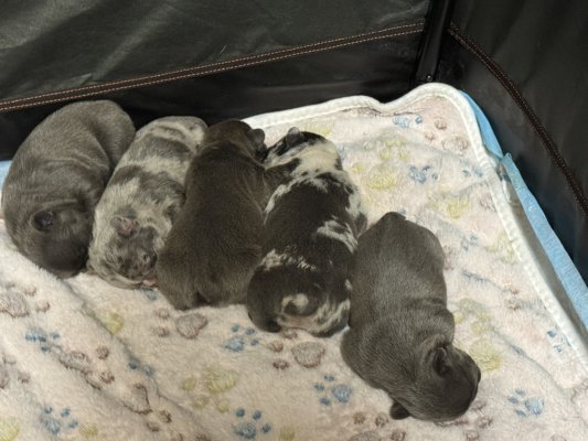 3 mâles bleus et 2 femelles silver merle
