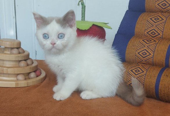 Athéna, femelle lilac tortie et blanche dbe yeux bleus disponible