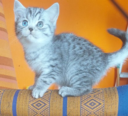 Aslan, céleste mâle black silver tabby spotted yeux impairs. Réservé