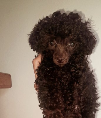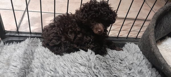 Ter adoptie, prachtige Toy Poodle teefje chocolaat van zeer klein formaat!