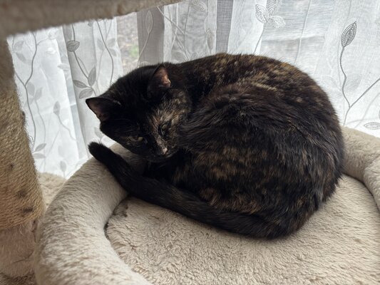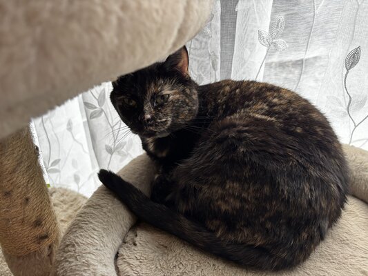 J’ai cruella une écaille de tortue qui est née en 2019 opérer et pucee