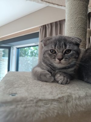 Il y a 6 chatons de disponible mais je ne saurais pas encore vous dire si ils seront straight ou fold, on ne saura le dire qu' entre 20 et 30 jours après la naissance et ils sont tous de la même couleur on dirait blue silver tabby. je vais vous montrer dans les photos jointes des photos de la dernière portée de Mia en accord avec les propriétaires, ils ont 6 mois :)