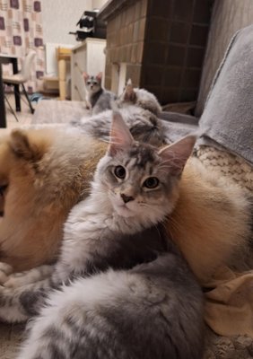 Les chatons vivent en société dans notre foyer en la compagnie d'un grand chien et 4 grand adolescents 😊