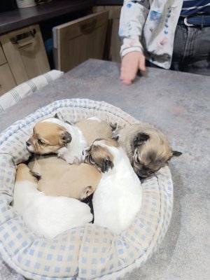 Beaux chiots chihuahua pure race avec poils long et poils court. la mère a des poils courts et le papa avec poils long.Il y a 4 femelles et un mâle qui est le plus foncé de tous! Élevés en famille avec plusieurs Congénères avec l'éducation pour qu'ils soient le plus propres possible et sociables avec tous le monde. pour ce prix ils seront pucés et vaccinés.