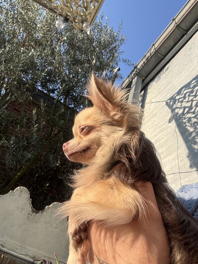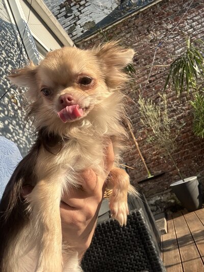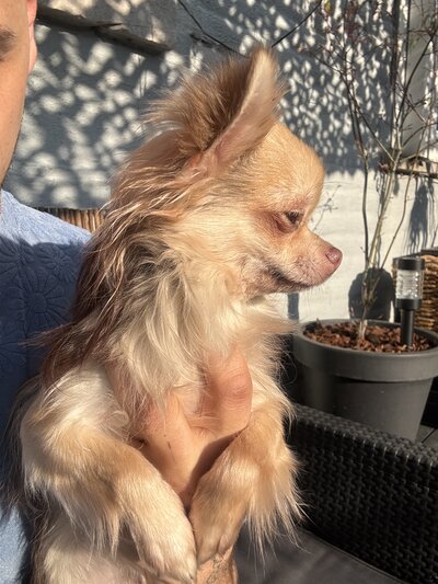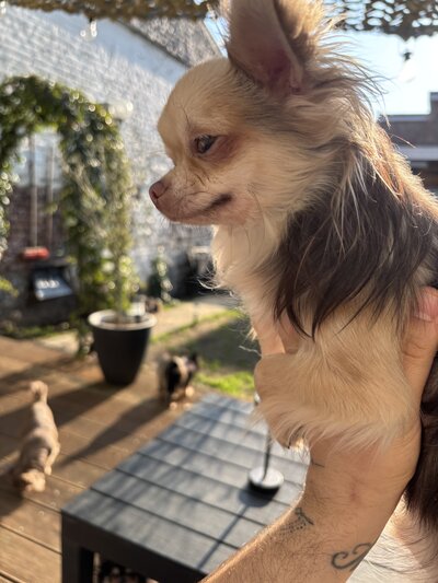 Je propose mon mâle Chihuahua chocolat dilué charbonné à poils longs pour saillie. Il est en parfaite santé, bien dans ses pattes il débute dans les saillies, il a déjà fait ses preuves avec une femelle.
