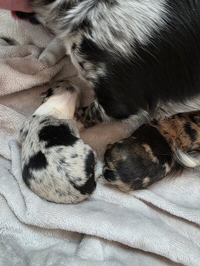 2 femelles chihuahua merle long poils parents visible a la maison elever en famille avec enfants et autres chiens et chat pour tout renseignement part telephone