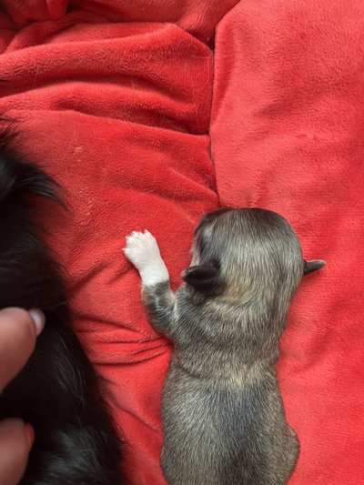 Chiot mal né le 12 novembre 2025 2 mal couleur blanc et 1mal couleur crème et un mal couleur beige les femelles 1 blanches muticolor tache gris bleu et 1 femelles noir et feu et 1 femelles beige...