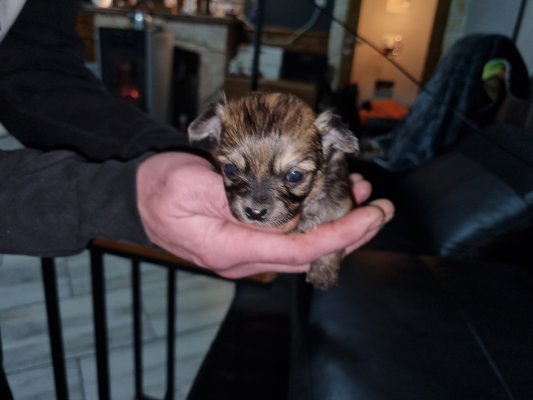 A vendre chihuahua poils longs 2 mâles et 1 femelle parents visiblent ils seront dispo avec passeport européen élevées en famille