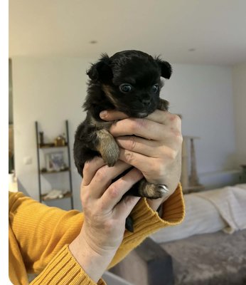 A la reservation 1femelle blanche poils longs et 1 male noir et feu poils longs. Ils seront tres petits la femelle fera environ 1. 300 kg adulte et le male environ 1kg 500