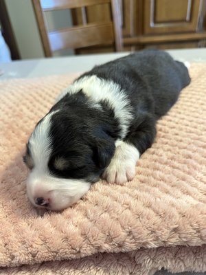 Femelle tricolore Berger Australien X Border Collie née le 9 octobre 2025.