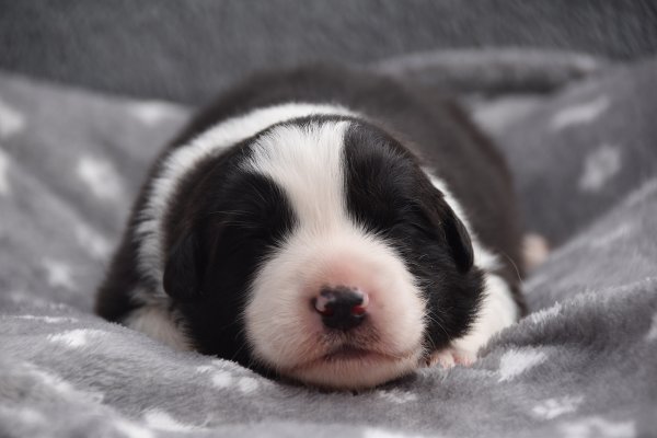 Les chiots naissent et grandissent au sein de notre foyer, entourés de notre famille. Une attention particulière est portée à leur socialisation : contact avec les enfants, autres chiens, l'écurie, bruits du quotidien dans la maison et apprentissage de la propreté grâce à des sorties régulières.