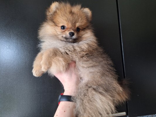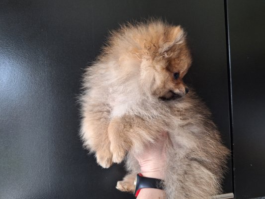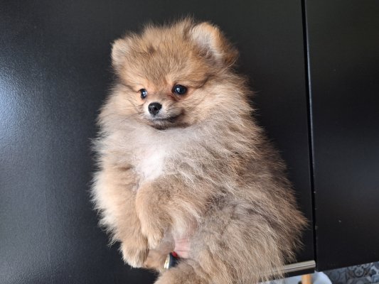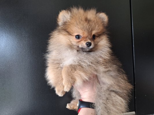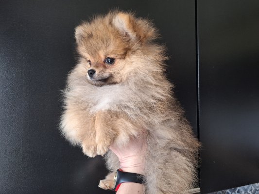 Petit dernier de sa nichée, un mini mâle orange Spitz nain pomeranien nounours avec Pedigree Saint-Hubert (875gr pour 9 semaines). Papa nain black&tan de 2kg600 et maman naine crème de 2kg900.