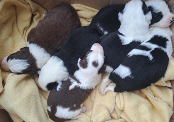 Bonjour, je vous présente mes 5 jolis bébés border collie encore à la recherche de leur future famille, Ils sont nés le 1 er novembre et sont à présent en âge de recevoir de la visite. Ils pourront nous quitter à partir de leurs 8 semaines et en ordre de puce, vaccins, vermifuges, carnet européen, pedigree nvbk, garantie et accompagnés d'un pack de départ royal canin. Les parents sont testés aoc et mdr1 négatifs.
