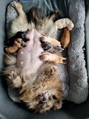 Une nichée de Spitz Allemands nains et petits a vu le jour ce 11 avril 2026, papa nain orange 2,8kg et maman merle petit 4kg. 7 chiots sont disponibles à la réservation :