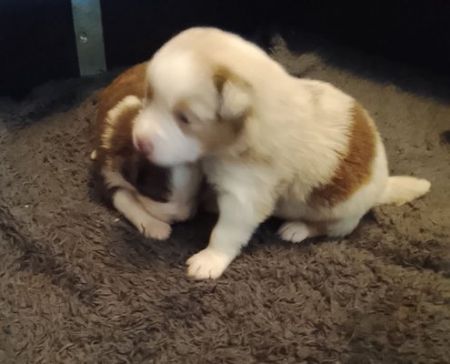 10 petits Aussie sont nés de l'union de Switch of Piek'Shawi (pédigrees lof et lob) et Urio de l'étendue des bergers (qui a les pédigrees lof et srsh).