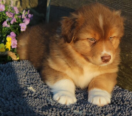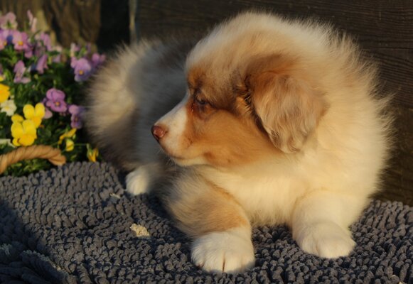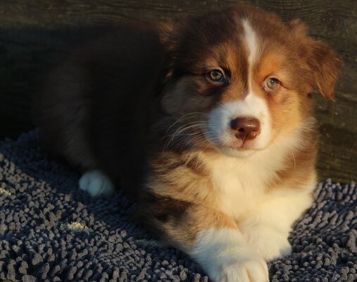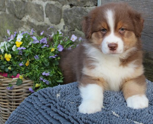 Gaïa et Oréo ont eu 7 magnifiques chiots Berger Australien. Les parents sont testés, visibles à la ferme et en parfaite santé.