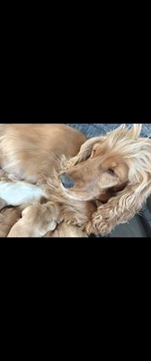 Ma petite cocker nous a fait la jolie surprise de donner naissance à 11 jolis bébés. Certains sont feu, d'autres sont feu mais un peu plus clair et 2 d'entre eux sont blancs tacheté feu. Un vrai camaïeu de cockinous !