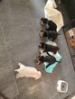 Les chiots sont nés et vivent dans notre salon avec la maman, le papa, une demi-sœur d’une porte antérieure, une tantine et nous. Nous avons 3 enfants (17, 12 et 9 ans), ce qui entraîne les passages de leurs amis et de leurs parents. Les petits auront donc l’habitude des bruits de la maison, mais aussi des manipulations et des autres chiens.