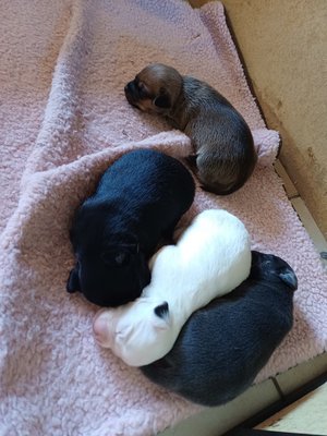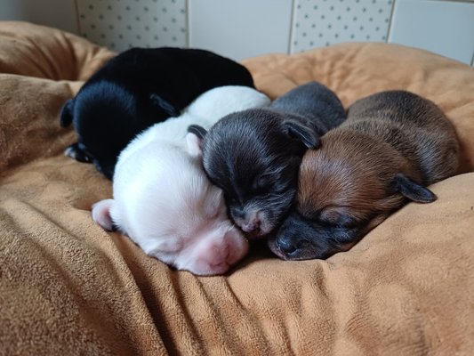 Maman Jack Russel et papa Chihuahua noir et blanc poils long