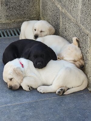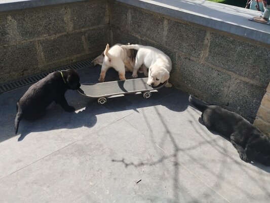 Il nous reste trois chiots, en attente d'information suite à une visite ce vendredi, 2 mâles Labrador (un beige et un noir) et une femelle beige avec le pedigree srsh. Ils sont nés le 28 février 2026.