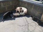 Les chiots sont nés et vivent dans notre salon avec la maman, le papy, la mamy et une tante.