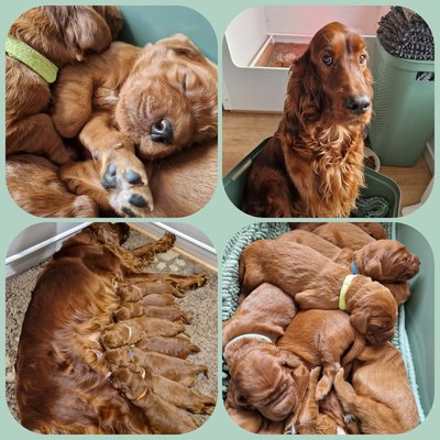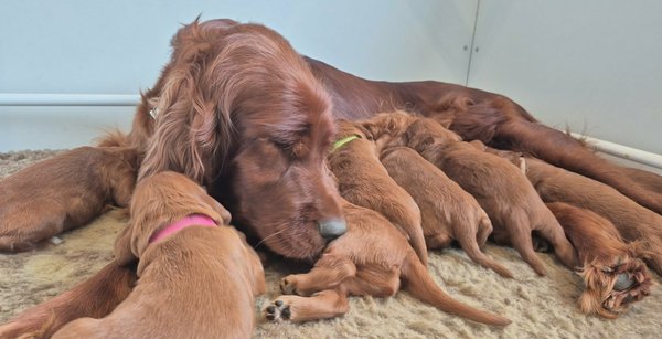 Nous avons une portée de très beaux setters irlandais disponibles a la réservation.