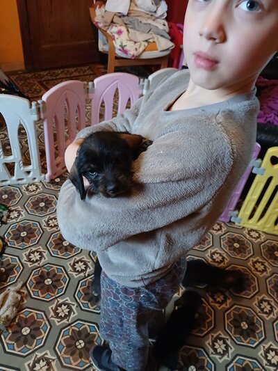 Nous avons 3 adorables fifilles de disponible à la reservation, se sont 3 fifilles poils dur de couleur sanglier, elles seront disponibles le 19 avril